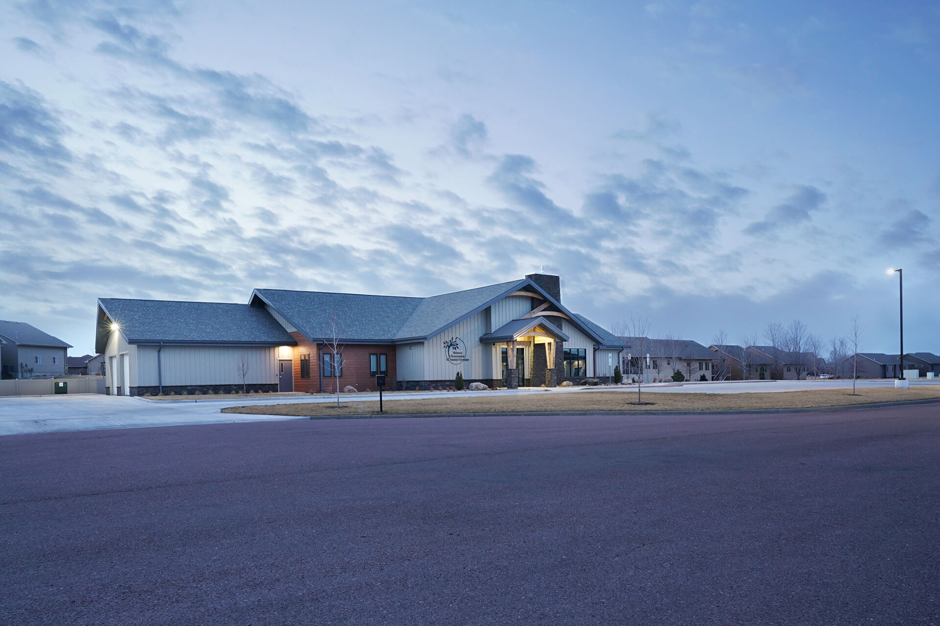 Relocating to the quickly growing southwest side of Sioux Falls, Midwest Periodontics chose a plot nestled between a new residential development and bustling Louise Avenue. The pre-function space brings elements from the exterior into an expansive reception and waiting area.